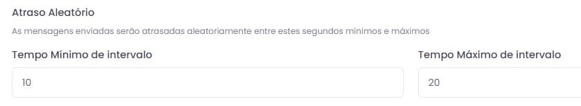 - Envie as transmissões com intervalo mínimo e máximo definidos, exemplo: 10 a 20s, pois assim, o envio não será linear, uma mensagem será enviada em 10s, outra em 17s, 20s, 15s, 14s e assim por diante, realizando envios aleatórios para que o WhatsApp tenha dificuldade em identificar que o disparo é feito de forma automatizada.